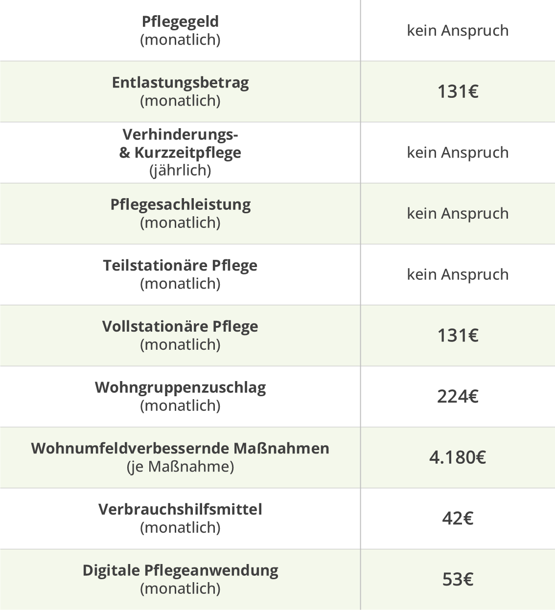 Mit dieser Einstufung können Betroffene bereits erste Leistungen der Pflegeversicherung nutzen.