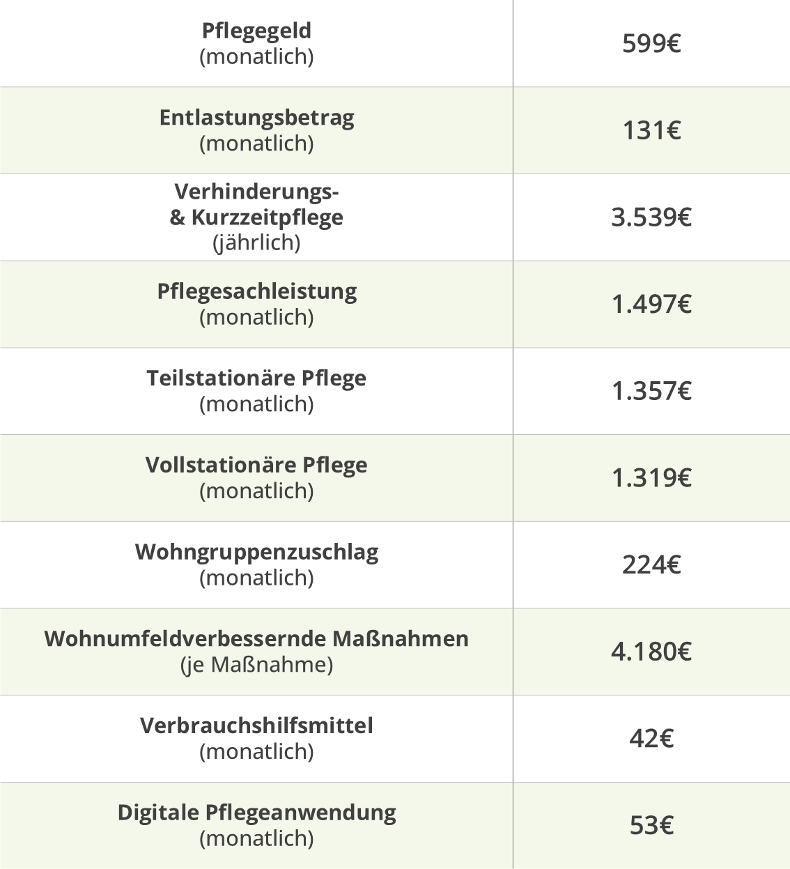 Ab Pflegegrad 2 steht dafür, je nach Pflegegrad, ein unterschiedlich hoher, monatlicher Betrag zur Verfügung.